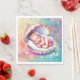 servilletas Baby Shower para chicas. Dulce suave rosa pastel, violeta, verde azulada y azul de la zona costera de la ducha de bebé. Una niña pequeña durmiendo dentro de un rato y una concha dorada. agua azul bonito del océano con una acuarela de flores tropicales.