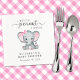 Cuestas servilletas para la ducha de una niña con "A Sweet Little Peanut Is On Her Way" escritas en una mezcla de tipografía gris suave y un guión elegante, y una acuarela rosa pastel de un elefante bebé. Personalice el nombre y la fecha de ducha de la futura madre en una simple tipografía gris.