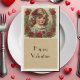 Este diseño de toallas de papel de huésped presenta a una encantadora niñita en un marco de rosas rojas. Viene con el texto "Feliz San Valentín". Ya puedes personalizar eso. Genial no sólo para San Valentín, sino también para su fiesta jubilatoria y su ducha de novia. Contenido generativo de Alma Wad y Canva AI,