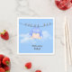 Niño colgado en una tela con fondo de cielo azul y nubes. Se puede usar para Baby Shower.