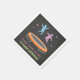 Fiesta provee servilletas de papel para una fiesta de cumpleaños con temática de traspolín. El diseño es de una paleta de colores pastel que contrasta con el fondo negro grisáceo de la textura. Se pueden ver siluetas de niños rebotando en el trampolín. Agregue el título en texto verde.