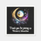 Una maravillosa luna llena de vibración está enmarcada por una luna creciente dorada con detalles florales que tiene pequeñas estrellas azules brillantes y moradas magenta en torno a ella, con un fondo negro de medianoche que puede cambiarse a cualquier color de su elección. Ideal para regalos de novios en un boda de luna y estrellas; para su aniversario temático especial de noche estrellada o para cualquier negocio en mimbre; lodge o resort.
