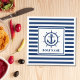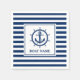 Nautical Anchor Rope Wheel Navy Blue and White Striped Boat Name Napkins