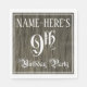 Este elegante y elaborado diseño de servilletas de papel para fiestas de cumpleaños incluye un nombre de personalizable y el mensaje "Novena fiesta de cumpleaños". El gran número "9th" y las palabras "Birthday Party" están en un texto de estilo de escritura de lujo, y el fondo tiene un patrón falso/imitación inspirado en los granos de madera. Unas servilletas de papel lujosas como esta podrían ser útiles en una fiesta de cumpleaños que se celebra en celebración del noveno cumpleaños de alguien. [~Z0000564]