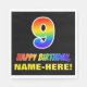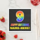 Este colorido, divertido y alegre diseño de servilletas de papel temático para cumpleaños presenta un gran número "9" y el mensaje "FELIZ CUMPLEAÑOS", ambos con un colorante inspirado en el gradiente del espectro del arcoiris, junto con un nombre de destinatario editable amarillo en negrita. El fondo es negro de color. Las servilletas de papel con temática de cumpleaños como esta podrían ser usadas para celebrar el noveno cumpleaños de alguien. [~Z0000476]