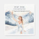 Celebra a la novia con estilo con estas servilletas para fin de semana de despedida de soltera de esquí chic, que presentan a una novia glamurosa en las pistas sosteniendo champán en un entorno invernal mágico. Perfectas para celebraciones después de esquiar, fines de semana de despedida de soltera en la montaña y reuniones de boda elegantes.