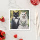 Dos gatos están vestidos con ropa de boda uno con esmoquin y el otro con vestido de novia sosteniendo un ramo
