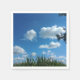 Nubes de bonito en el cielo azul sobre el borde de un campo verde. Puede hacer clic en personalizar y cambiar la imagen a la suya.