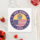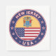 Insignia de Nueva Jersey con bandera de Nueva Jersey y bandera de los colores de Estados Unidos, forma redondeada. Emblema de Nueva Jersey. Sello de Nueva Jersey. Colección de Estados Unidos.