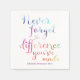 Una hermosa servilleta de retiro o apreciación para profesores, enfermeras, médicos, pastores, etc. Perfecto para un fiesta jubilatorio u otra celebración. Este gran dicho "nunca olvides la diferencia que has hecho" aparece en una tipografía de acuarela de bonito. Se puede personalizar con un nombre y una fecha - u otro mensaje.