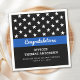 Añada el toque final a su fiesta de retiro o graduación de la policía con estas modernas servilletas de fiesta de policía y suministros de fiesta. Diseño de la bandera estadounidense en los colores de la bandera de la policía, diseño moderno de diseño blanco azul negro. Esta colección de graduación de oficiales de policía será la favorita. Vea nuestra delgada colección de líneas azules para igualar invitaciones a la jubilación de la policía, regalos de la policía, favores del partido y suministros. DERECHOS RESERVADOS © 2020 Judy Burrows, Black Dog Art - Todos los derechos reservados. Graduación de Fiestas delgados de la Línea Azul
