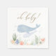 La decoración de la ducha para bebés se completa con las servilletas de temática marina, con ballena de bebé y mami en suaves acuarelas azules.