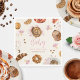 Pastries & Pacificadores temática de brunch con Ilustracion de una pastelería incorporada en el diseño "oh baby" con ilustraciones de pacificador, café, floral y pastelería alrededor.