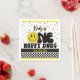 Personalized One Happy Dude first birthday playful napkin design with bold typography, the word ONE highlights a faux glitter yellow “O” styled as a smiley face — complete with a lightning bolt eye to create a cool wink effect. The phrase “One Happy Dude” brings energetic, upbeat vibes that pair perfectly with modern boy birthday themes.