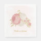 Flores románticas rosas y blancas con hojas de oro servilleta de papel boda botánico.