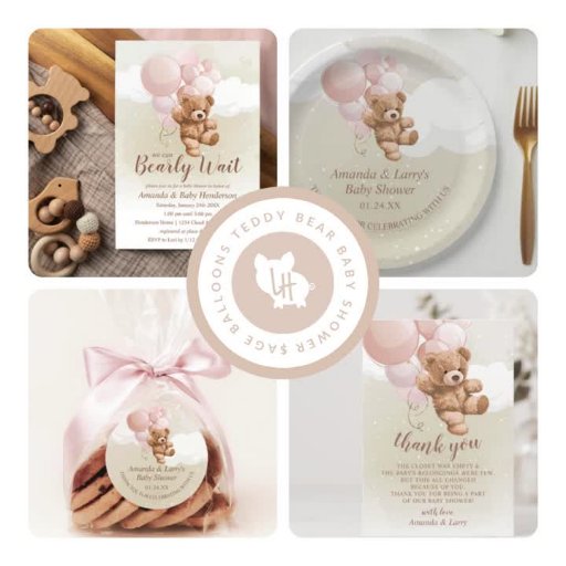 Blush Pink Balloon Teddy Bear Baby ShowerDiseñado por Amanda Cudnik