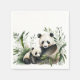 Acuarela lindo oso panda en hojas de bambú con un cachorro sobre un fondo blanco.