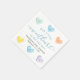 Complete a sweetheart-themed baby shower table setting with this charming candy heart baby shower napkin designed for celebrating a baby boy. Colorful conversation heart illustrations surround the layout, featuring playful phrases like “It’s a Boy!” alongside soft blue script reading “Our Little Sweetheart Is on the Way.” Customers can personalize the napkin with the guest of honor’s name and baby shower date, displayed neatly below the main wording. Sweet and Valentine-inspired, this napkin coordinates beautifully with sweetheart-themed décor for February baby showers welcoming a baby boy.