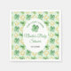 A charming St. Patrick’s Day baby shower napkin featuring a soft green background, golden horseshoes, and scattered four‑leaf clovers for a sweet “lucky charm” theme. The central white oval frames the event details beautifully, creating a warm, welcoming design perfect for celebrating a growing family. Ideal for March celebrations, Irish‑inspired themes, or any baby shower that embraces luck, joy, and new beginnings.