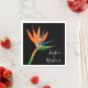 Sus nombres y un exótico pájaro tropical de flores de acuarela del paraíso en un fondo negro (o cualquier color) aparecen en estas servilletas de cóctel, decoración de un evento boda. COINCIDIENDO elementos de nuestra colección.