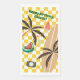 Sostenga un inolvidable fiesta de verano con este diseño de cuadros de limón amarillo blanco que ilustra palmeras, una tabla de surf, helados, un melón y una cámara.