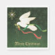 Decoren la mesa de sus Navidades con esta "One of a Kind" Navidades ¡Napkin! Cuenta con una serena paloma blanca que vuela entre las estrellas y lleva una rama de olivo con cintas rojas y verdes que fluyen. Este es un diseño original del artista Kerry Miller.