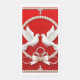 Diseño elegante que presenta dos palomas blancas, anillos de boda dorados y un marco de perlas sobre un fondo rojo intenso. Un símbolo de amor, paz y unidad, perfecto para temas de boda, romance o Día de San Valentín.