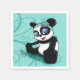 Un bonito panda con una banda de flores turquesa. Mostrado con un diseño floral sobre un fondo turquesa. Un tema lindo para una fiesta de cumpleaños de chicas.