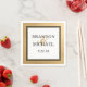 Tu boda, fiesta de compromiso, ducha, cena de ensayo brillarán con estas servilletas de cóctel blancas, negras y de Relieve metalizado de oro falso. Su hermoso borde dorado con marcos de entrada negros, grabador dorado y entre sus nombres, y la redacción negra en un tipo de letra clásico y moderno los hacen perfectos para usar con bebidas o aperitivos. Estas servilletas de cócteles lgbtq son muy fáciles de personalizar y hacer su propia. Seleccione Personalizar esta plantilla y escriba su información. En segundos verá cómo se verán sus exquisitas servilletas.