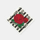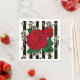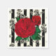servilletas de fiesta de papel con la imagen de rosas rojos vintage contra un fondo de rosa blanco y negro.