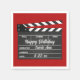 Las servilletas fiestas de papel divertido presentan tablero de película de estilo retro con texto de personalizable sobre fondo rojo (cambia a cualquier color que prefiera). Personaliza para cumpleaños, noches de premios de películas y más. Coordina con otros productos de nuestra colección de artículos de regalo de tema de película y suministros de Fiesta