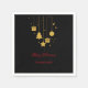 Elegante y moderno árbol de Navidad dorado etiqueta de regalo negro. Fondo negro, colores: negro, rojo, oro. Cartas rojas y el texto: Feliz Navidad. Plantilla para el nombre de su familia. Atrás: el texto: Con amor. Espacio para escribir a mano.