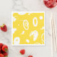 Esta servilleta de papel exhibe líneas blancas y manchas artísticas sobre un fondo amarillo naranja plano.