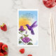 La hermosa servilleta de papel para tu casa o próxima reunión incluye un diseño parcial generado por IA de un pájaro morado y flores moradas colocadas contra un cielo azul y un sol con una cita inspiradora - y que es actualizado fácilmente por ti, si lo eliges.