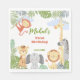Papel Napkin 1er cumpleaños con animales lindos. Un encantador cachorro de león, leopardo, elefante de bebé, jirafa, cebra y mono decorarán la festividad de su hijo.