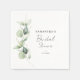 Personalice nuestra plantilla de servilletas de papel para despedida de soltera con follaje de eucalipto moderno para su fiesta previa a la boda. Cuenta con un diseño minimalista con follaje verde acuarela. Perfecto para otros eventos especiales como invitaciones para ensayo de boda, anuncios de "guárdame la fecha" y mucho más.