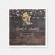 Servilletas de papel para ducha de novia floral rústico - con botas de vaquero de cuero rústico adornadas con girasoles y vegetación en un fondo de madera de granero y luces de cuerda brillantes en lo alto. Las servilletas son parte de una colección de ducha de novia.