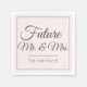 Servilletas de papel en rosa palo pastel con el texto "Futuro Sr. y Sra. + Apellido" en tipografía caligráfica elegante y chic. Diseñadas para coordinar con nuestra colección "Floral rosa palo y azul polvoriento". Si necesita otro color para combinar con el tema de su fiesta de compromiso, por favor háganoslo saber utilizando el botón de contacto a continuación.