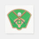 Este diseño es un campo de béisbol. La perspectiva es mirar hacia abajo en el campo. Se puede ver el diamante y luego el campo exterior. En la parte superior hay dos bates de béisbol que se cruzan entre sí y un béisbol. Este diseño de campo de béisbol se ve genial en estas servilletas de papel. Perfecto para usted o como regalo