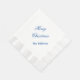 La servilleta de papel de vacaciones se muestra en blanco con el mensaje azul de las vacaciones de Feliz Navidad. Tamaño de almuerzo acuñado mostrado. Personalizar este elemento y cambia el nombre al tuyo.