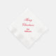 La servilleta de papel de vacaciones se muestra en blanco con el mensaje rojo de vacaciones de Feliz Navidad. Se muestra el tamaño normal del cóctel. Personalizar este elemento y cambia el nombre al tuyo.