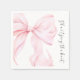 Celebre a la futura novia con esta elegante servilleta para despedida de soltera con el diseño "Ella está atando el nudo". Con un delicado lazo rosa en acuarela, esta servilleta emana encanto y sofisticación.