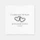 Crea una hermosa mesa fiesta con estas elegantes toallas de aniversario boda. Personalice las servilletas de cóctel blanco con los nombres de las parejas y la fecha de boda. Simple y elegante guión negro que dice "celebrar 50 años" puede ser editado a cualquier número por otro año de aniversario. Dos corazones entrelazados, dibujados a mano, dan un toque romántico original. Esta servilleta combina con el diseño de las copas de vino sin tallo personalizadas para un bonito juego de mesa fiesta.