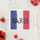 Ilustracion de diseño de texto de París con decoración de la Torre Eiffel sobre fondo de la bandera francesa gruesa