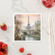 Se muestra una servilleta de papel para fiestas con una encantadora impresión artística de París.