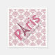 Las servilletas de papel de la fiesta de 16 años con temática parisina, con gráficos de fondo adamascado rosa y blanco y texto gráfico rosa leyendo París, con la carta hecha como la Torre Eiffel. Personalice el texto del guión negro para el día especial de su hija. Productos a juego disponibles.