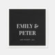 Las servilletas del Partido de la Boda Blanca Minimalista contemporánea. El diseño tiene un fondo negro con texto escrito en bonito en blanco y espacio para añadir los nombres de la pareja y la fecha boda . Estas preciosas y elegantes toallas de papel de boda se pueden personalizar fácilmente cambiando los nombres y la fecha. Para cualquier personalización adicional , no dude en ponerse en contacto conmigo en mypaperlove2021@gmail.com