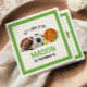 Esta es una fiesta de cumpleaños con temática deportiva. ¡Tomemos una pelota! Este diseño incluye fútbol, baloncesto, fútbol, hockey, golf, béisbol y tenis. Verde y marrón. Perfecto para un tema de cumpleaños infantil.