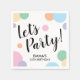 Este divertido diseño de servilleta fiesta presenta tipografía de escritura "Let's Fiesta" con nombre de personalizable y año de cumpleaños. Los puntos de confeti dibujados a mano en forma de globo rosado, azul, púrpura, naranja, amarillo y verde enmarcan los bordes.