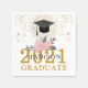Sencillas servilletas de fiesta de graduación con tapón de tipografía de decoración floral y tipo oro en una servilleta blanca. Tipografía simple y minimalista y tapa de grad con rayas doradas.